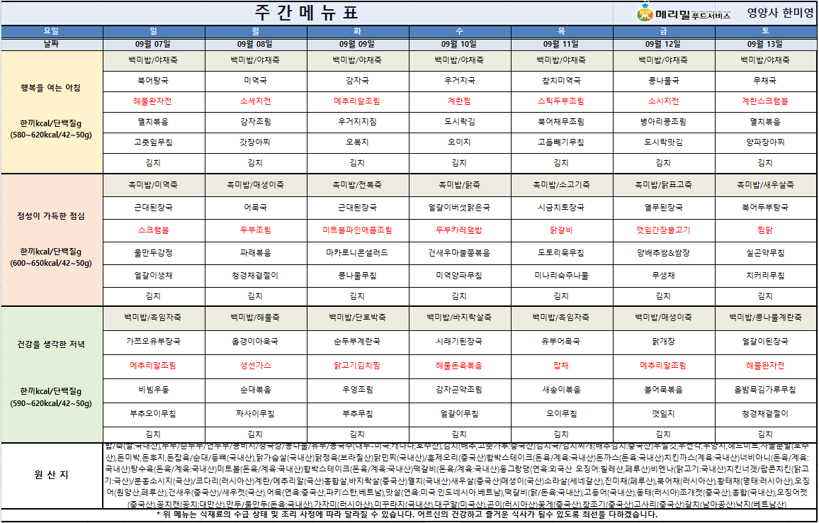 2025년9월2주차-주간식단표