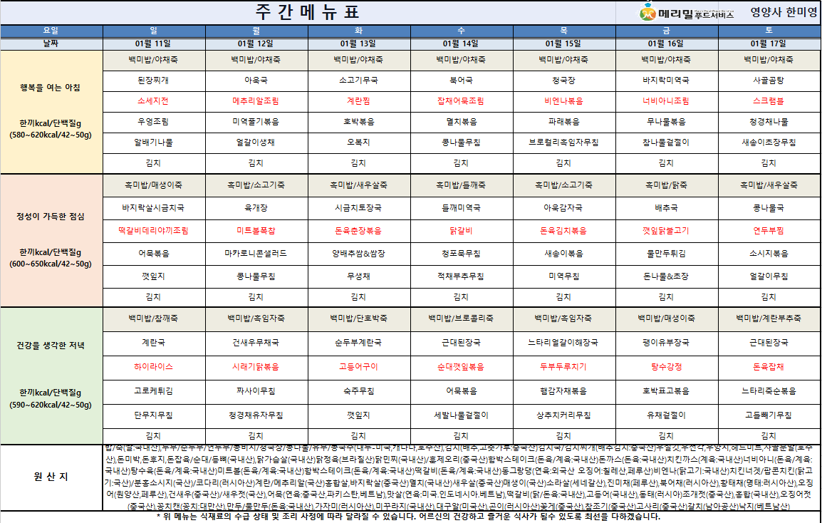 2026년1월3주차-주간식단표