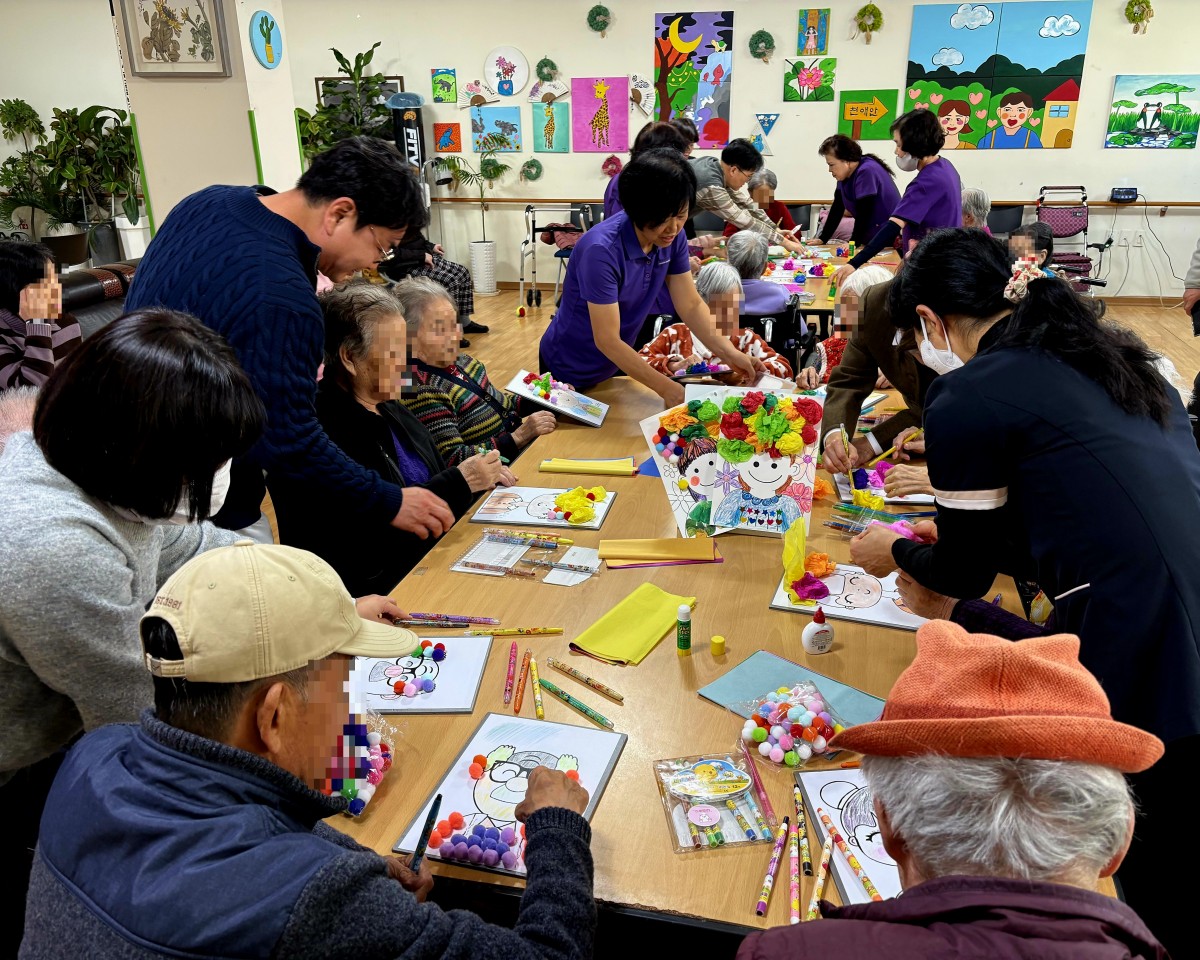 2025년 11월 24일 충청대학교 문화콘텐츠디자인전공 교수와 학생들이 세종찬애안요양원을 방문해 어르신들과 함께 문화 체험 프로그램을